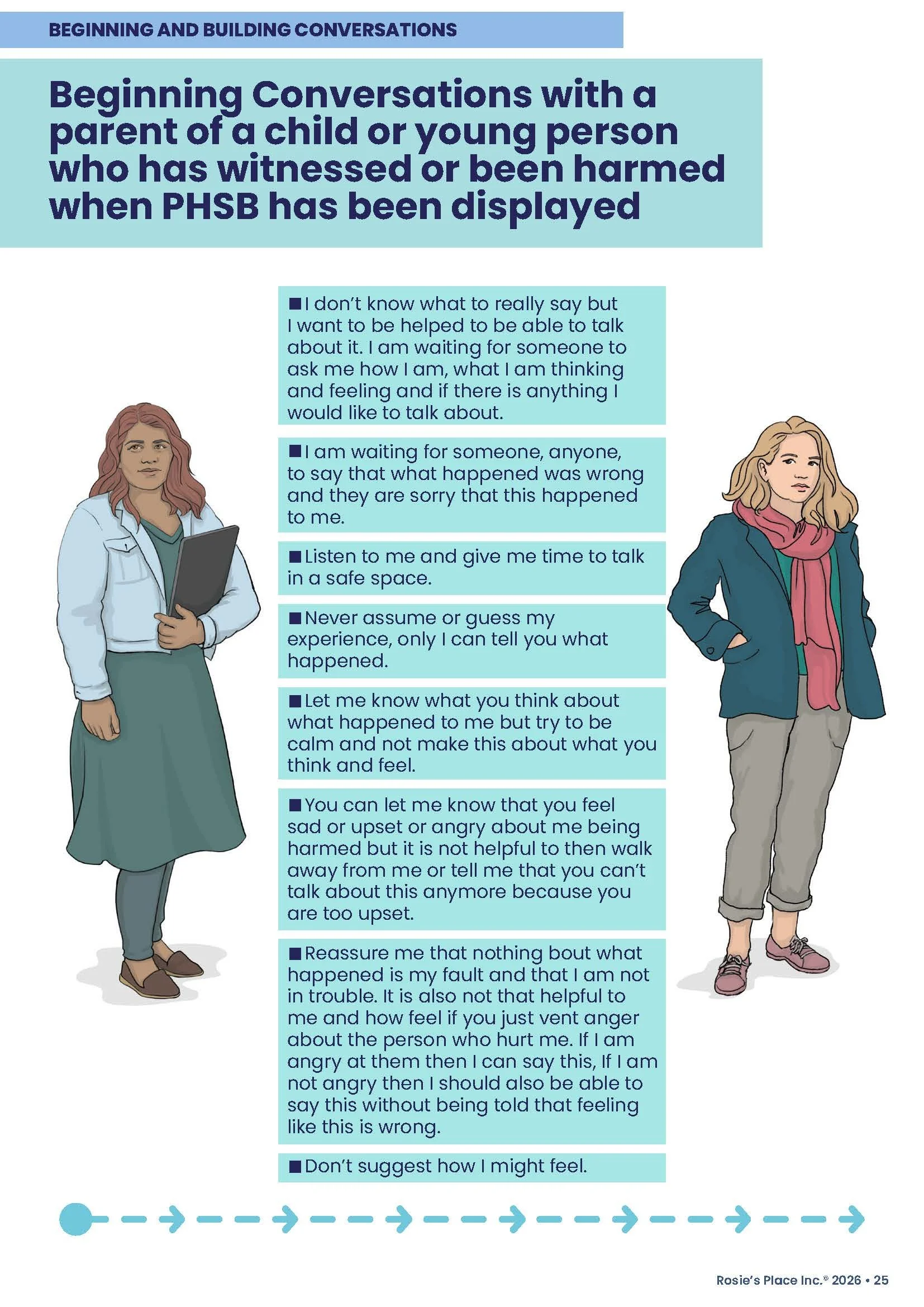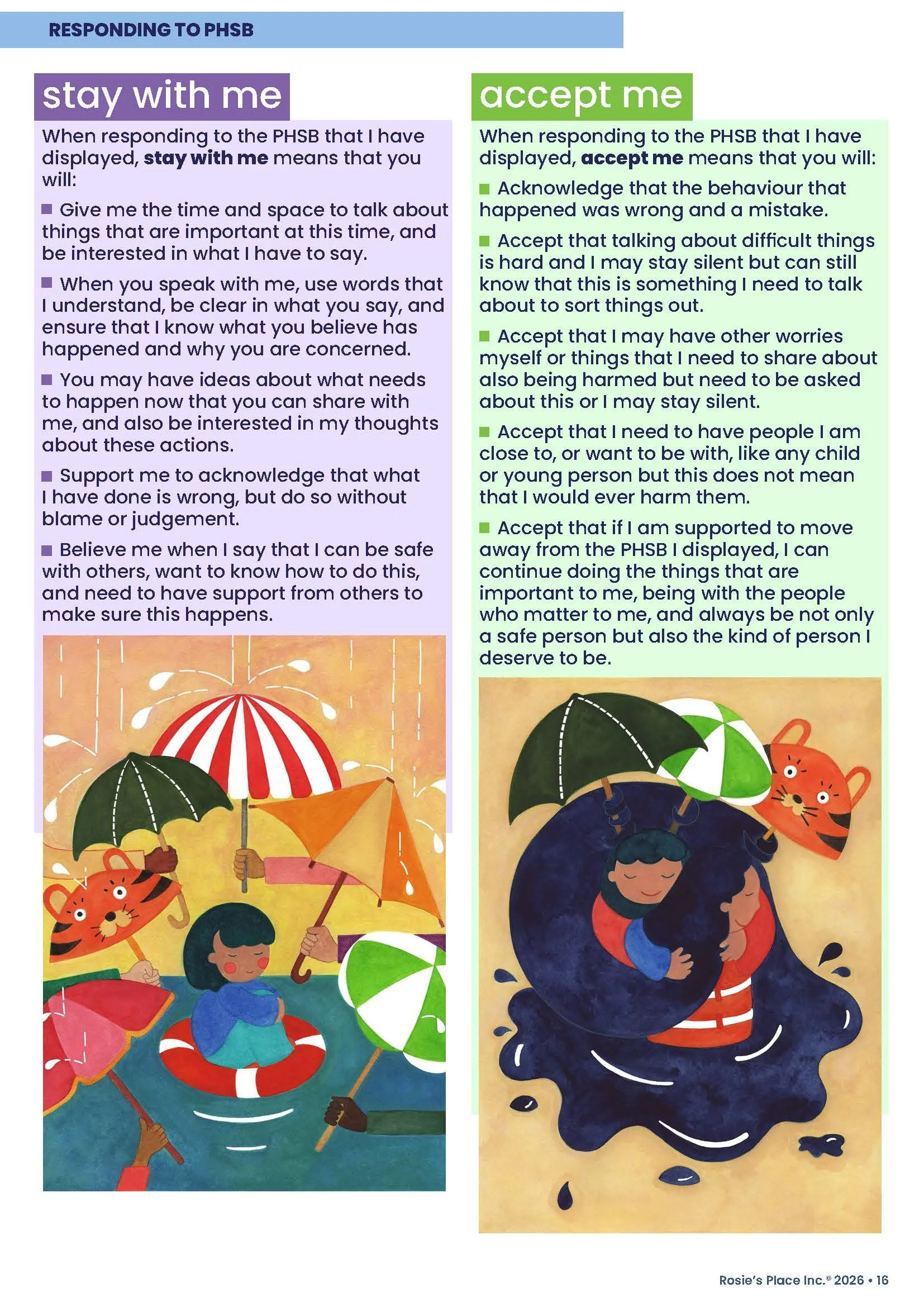 Rosie’s Place supports children and young people who have been harmed by PHSB, and children under the age of 12 who have displayed PHSB. For more information, please call or send us an email.